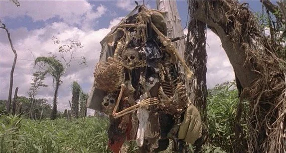 The tribes presented are the real-life Yacumo, Ya̧nomamö and Shamatari— portrayed to evoke a hyperrealistic and an orientalist view of the “other” by these presenting non-cannibalistic tribes as cannibalistic. But it is hard to criticize the film on this level, as very few films can reflect actual practices and experiences of native peoples. It is rare if documentaries can do so, let alone narrative film.