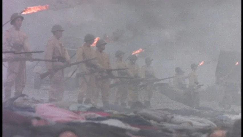 The 2003 DVD release of the film— the only US release to date, after it was widely— and undeservedly— regarded as a cult film and/or a snuff film— is emblazoned with the nauseatingly marketable phrase “in the tradition of Faces of Death,” placing it in a pantheon of films designed to titilate. It deserves better. Mou has been slandered in other, subtler ways, on a larger scale, as he has been placed in a cultural vacuum with other exploitation directors. So much so, that he was once incorrectly credited on Netflix as Godfrey Ho, the director of several exploitation films, including the “sequels” to Sun. That Mou's magnificent, if astonishingly bleak Black Sun: The Rape of Nanking is listed as Men Behind the Sun 4 as an alternate title is yet another insult— as though the film is but another in a series of snuff films found in the dusty back bin of an underground record store.